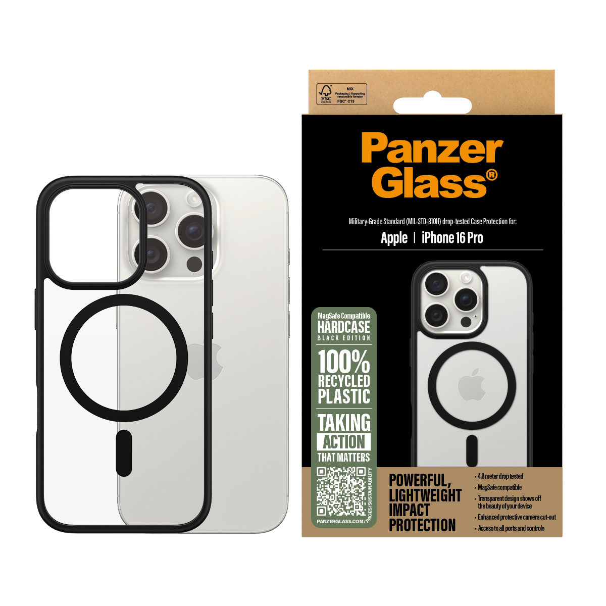 1302 - PanzerGlass ® HardCase Transparent w. Black MagSafe & Frame iPhone 16 Pro coque de protection pour téléphones portables Housse Noir