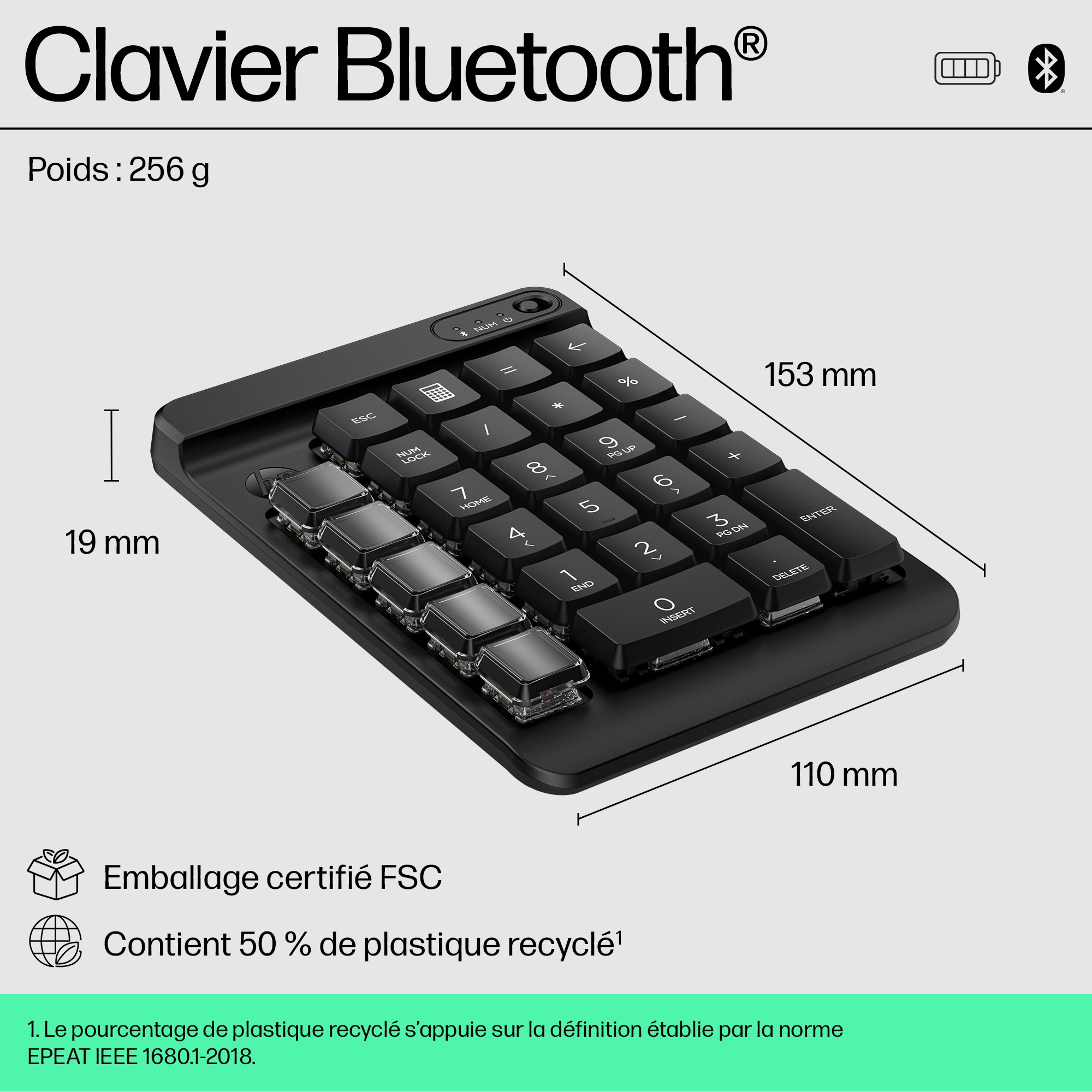| Dimensions du clavier (LxPxH) | 110 x 153 x 19 mm |