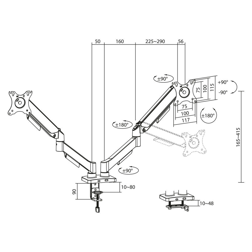 ACT Bras pour écran 35 pouces, vérin à gaz, 2 écrans, Essentials