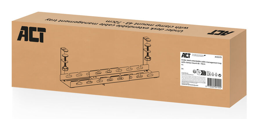 AC8379 - ACT Plateau de gestion des câbles extensible sous le bureau avec fixation par pince 43 - 72 cm
