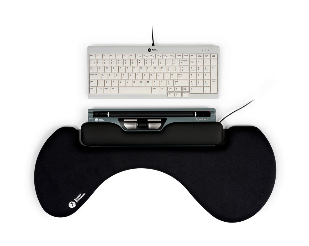 L'ErgoSlider+ est une souris centrale qui se place devant le corps et qui peut être actionnée avec les deux mains.