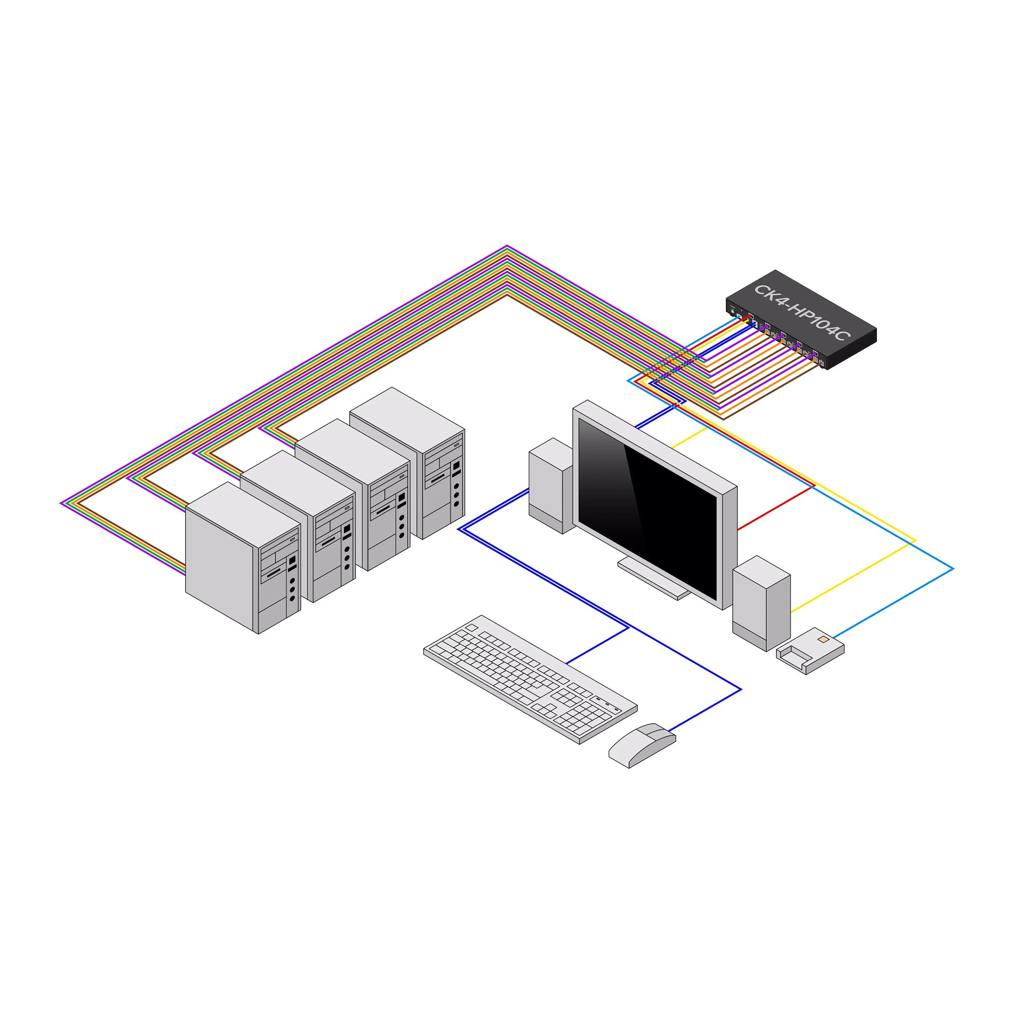 CK4-HP104CContrôlez plusieurs ordinateurs à l'aide d'un seul ensemble de périphériques tout en isolant les chemins d'accès aux données entre les systèmes et en garantissant qu'aucune donnée n'est jamais stockée