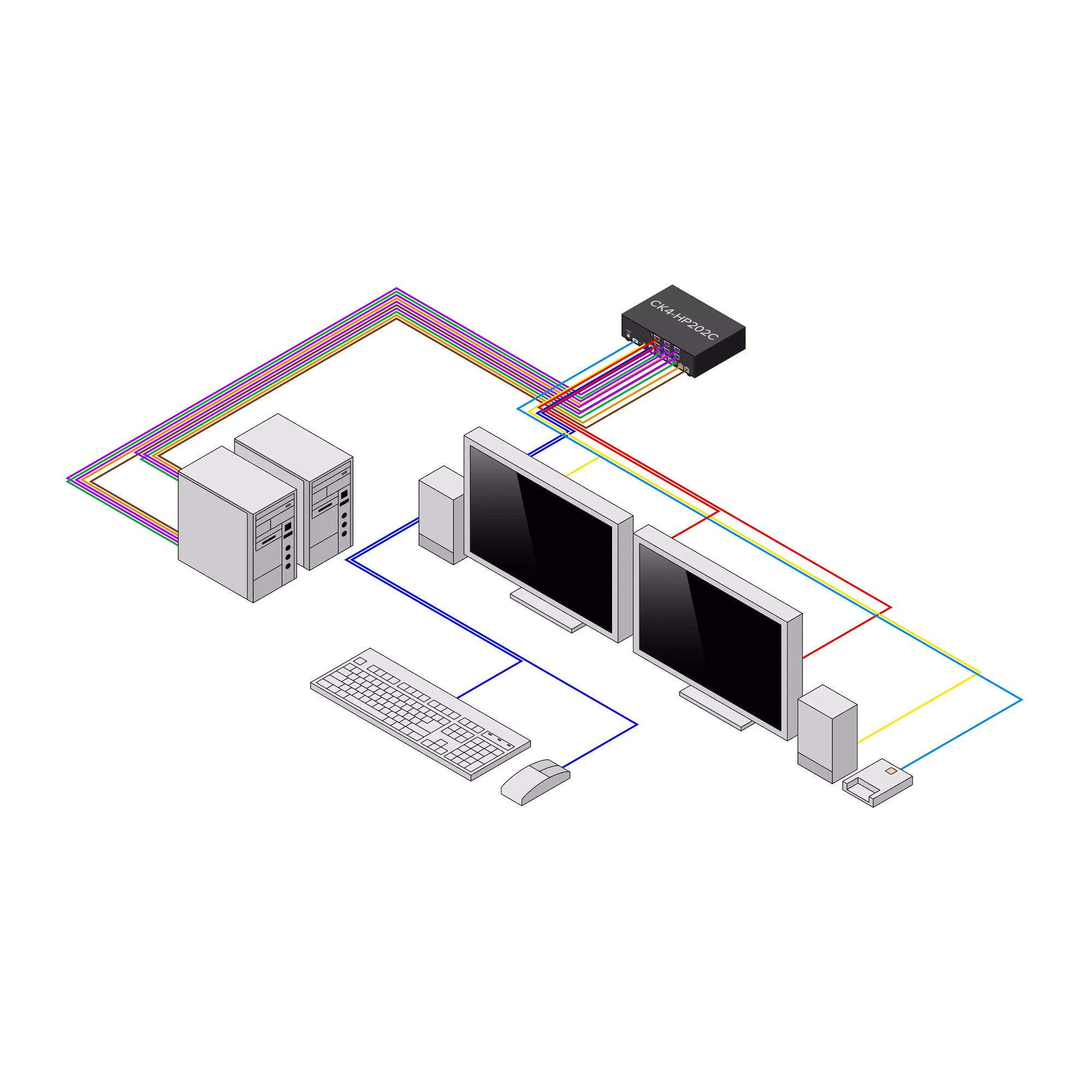 CK4-HP202CContrôlez plusieurs ordinateurs à l'aide d'un seul ensemble de périphériques tout en isolant les chemins d'accès aux données entre les systèmes et en garantissant qu'aucune donnée n'est jamais stockée