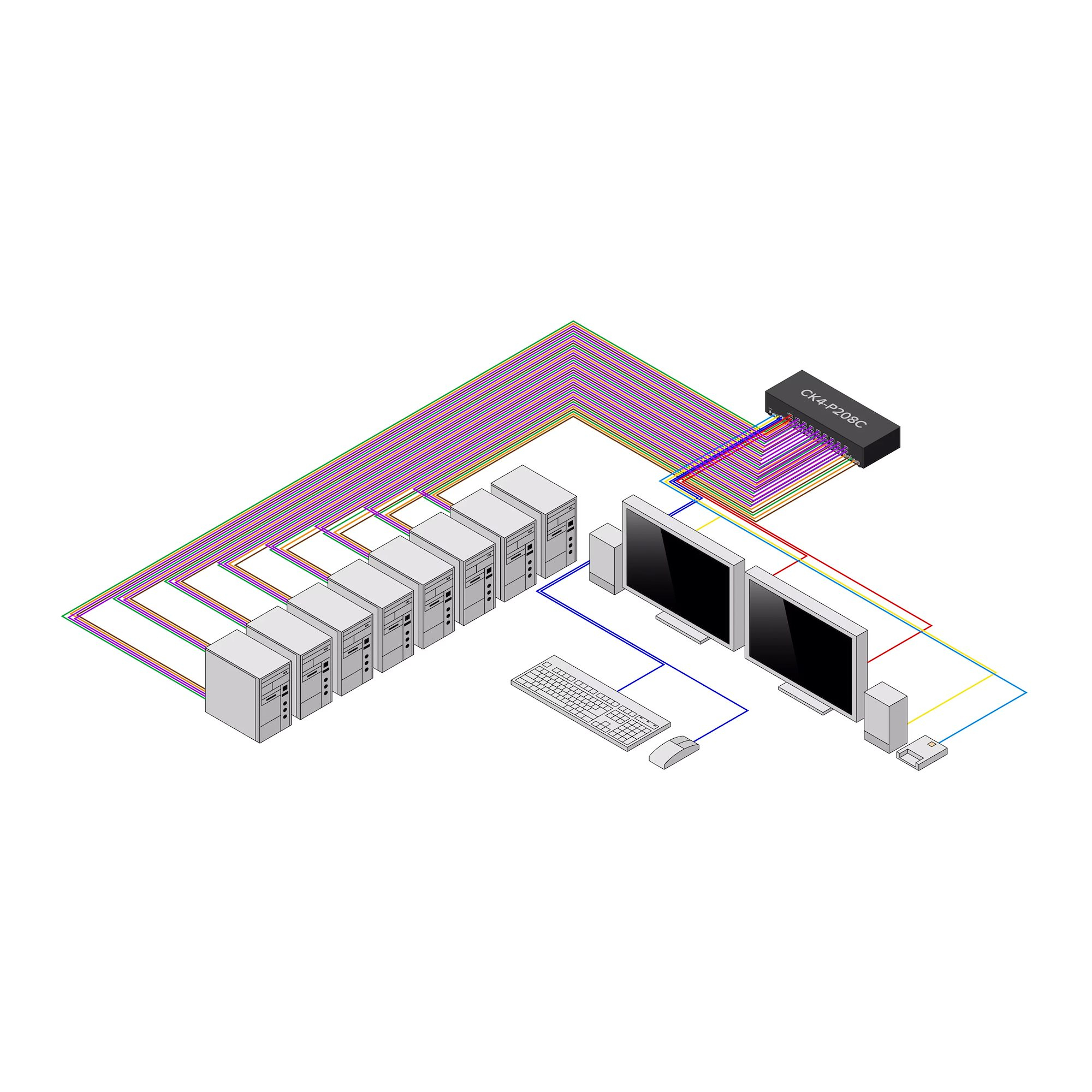 CK4-P208CContrôlez plusieurs ordinateurs à l'aide d'un seul ensemble de périphériques tout en isolant les chemins d'accès aux données entre les systèmes et en garantissant qu'aucune donnée n'est jamais stockée