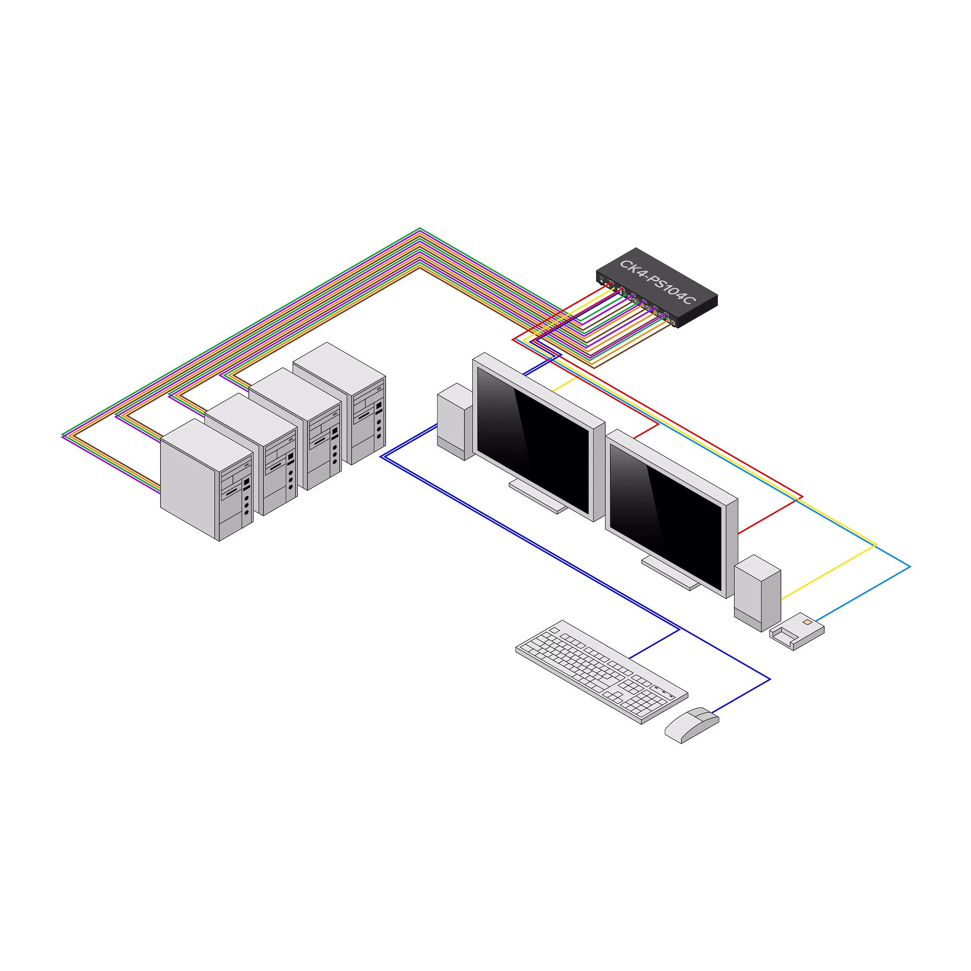 CK4-PS104CContrôlez plusieurs ordinateurs à l'aide d'un seul ensemble de périphériques tout en isolant les chemins d'accès aux données entre les systèmes et en garantissant qu'aucune donnée n'est jamais stockée