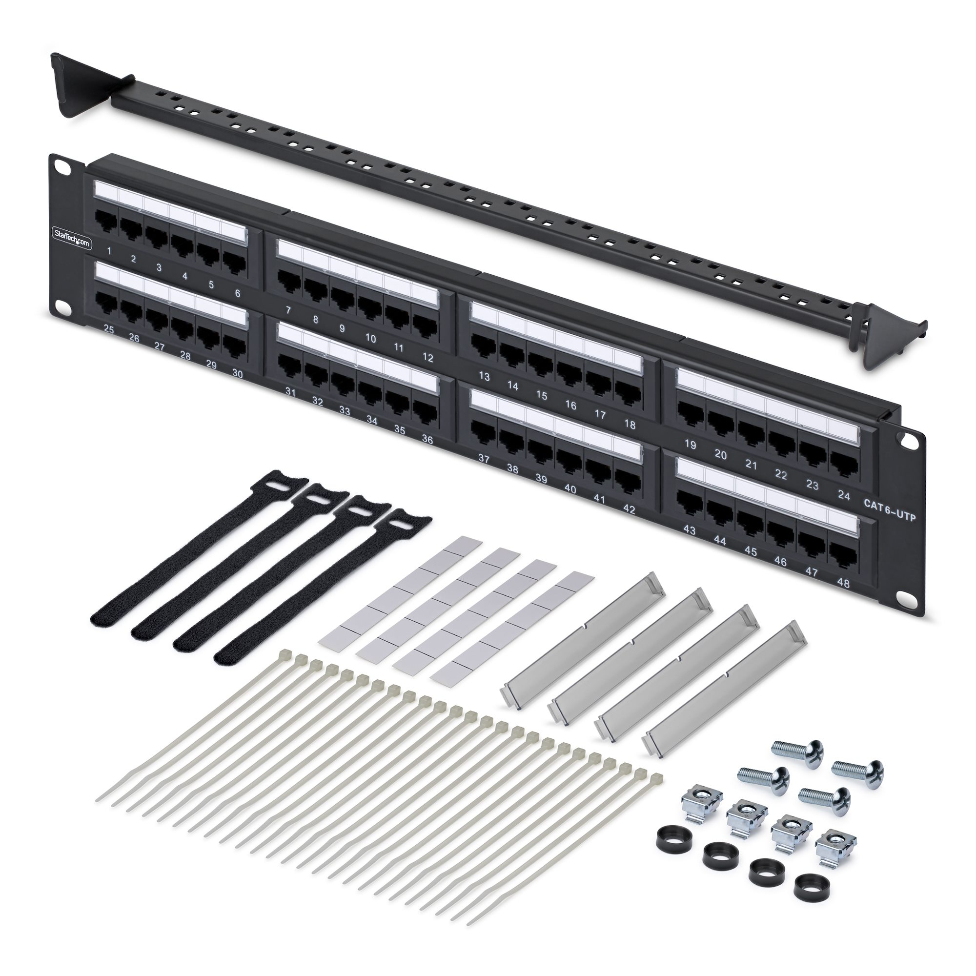HTVAStarTech.com Panneau Patch Cat6 48 Ports 2U Monté en Rack, RJ45, UTP, 110 Punch-Down, Panneau Patch Ethernet Cat 6 pour Rack Serveurs Réseau