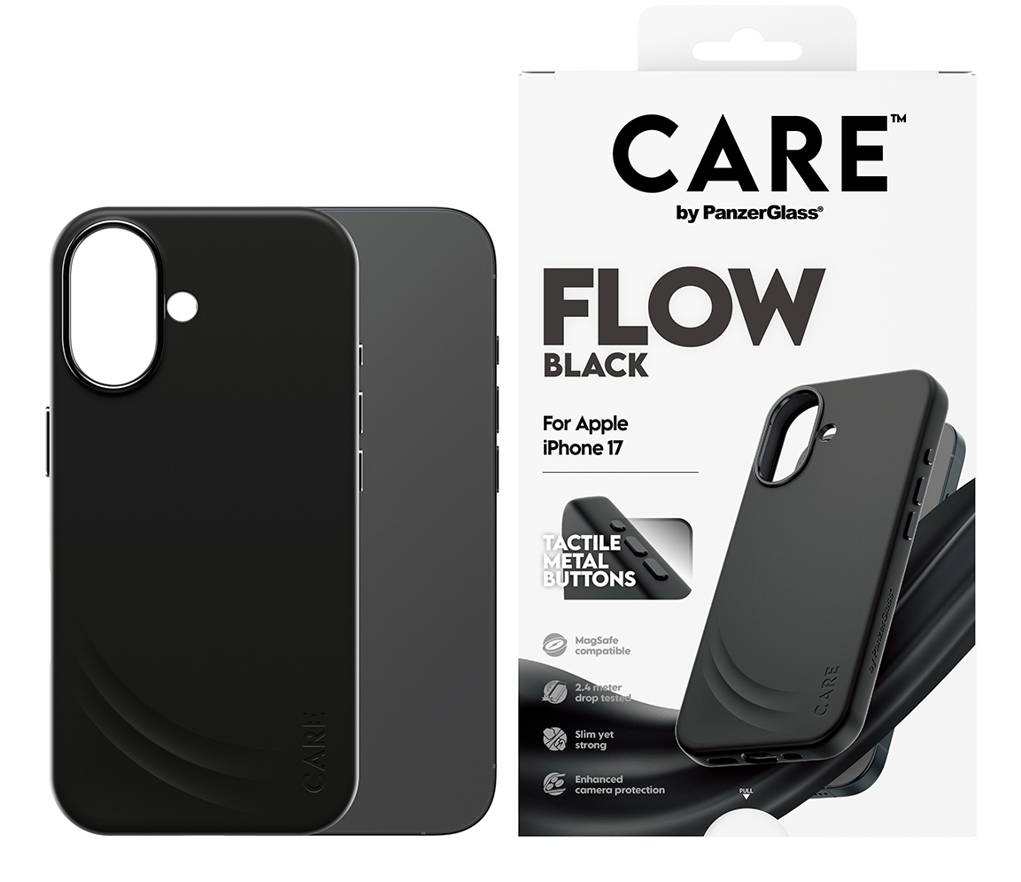 CR24695PanzerGlass CARE by ® Feature FLOW Case Black w. MagSafe iPhone 17. Type d'étui: Housse, Compatibilité de marque: Apple, Compatibilité: Apple - iPhone 17, Coloration de surface: Monochromatique, Couleur du produit: Noir