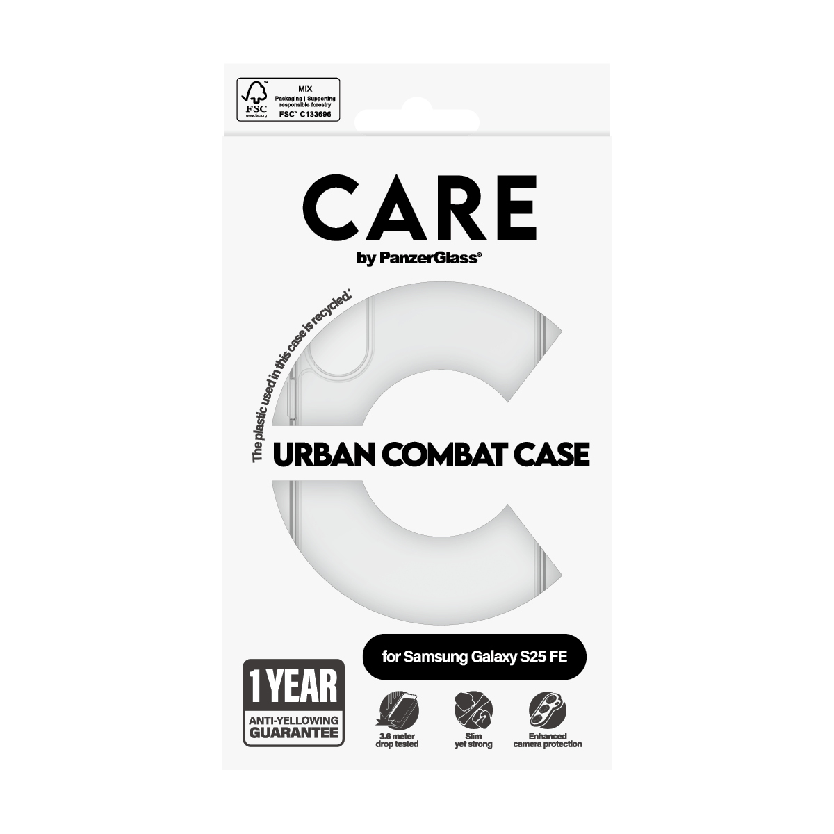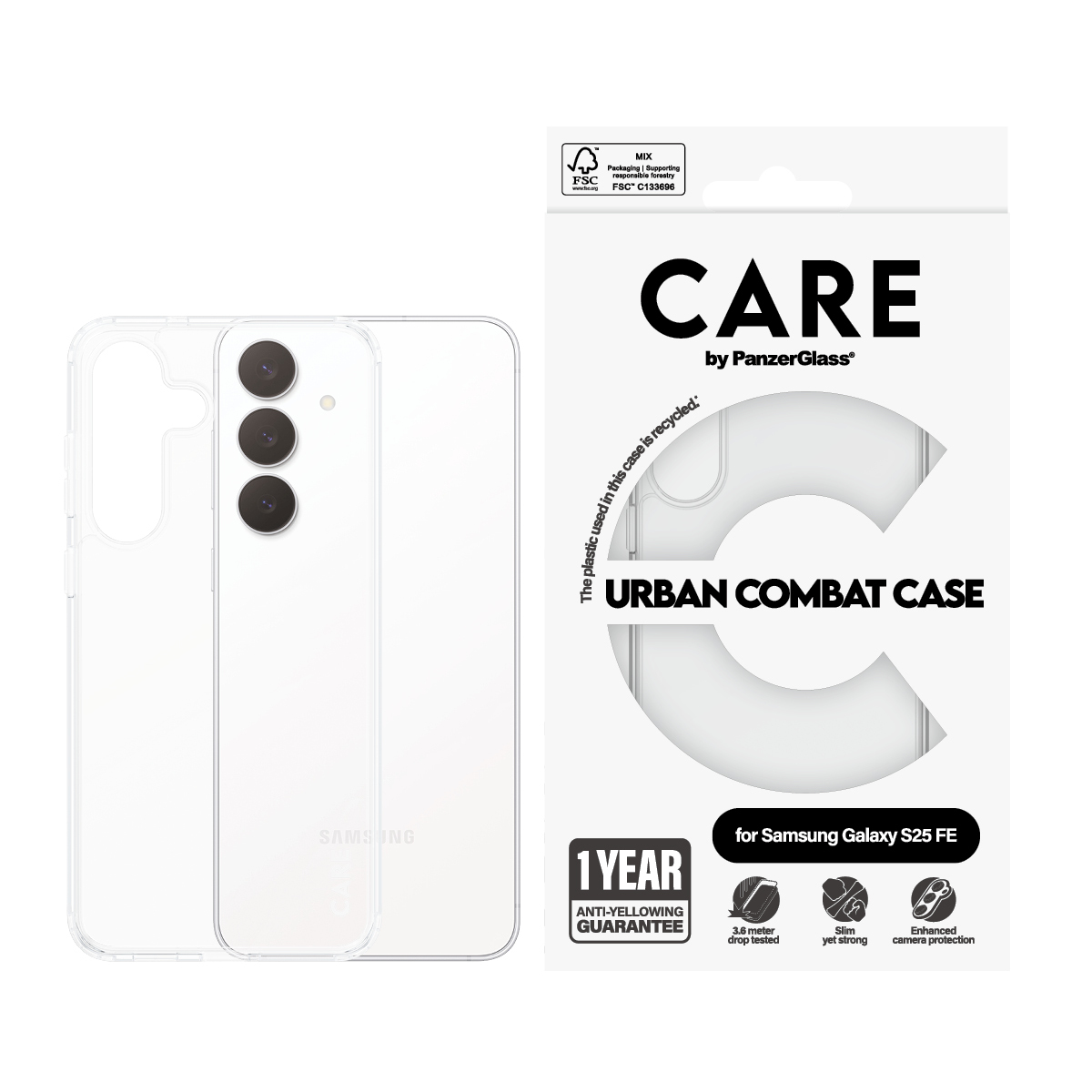 CR36998PanzerGlass CARE by ® Flagship Urban Combat Samsung Galaxy S25 FE 5G. Type d'étui: Housse, Compatibilité de marque: Samsung, Compatibilité: Samsung - Galaxy S25 FE 5G, Couleur du produit: Transparent