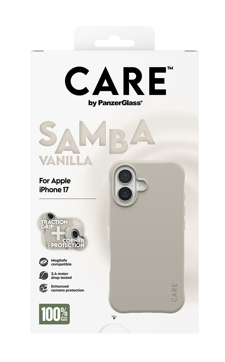 CR37406PanzerGlass CARE by ® Fashionable Case Samba Vanilla w. MagSafe iPhone 17. Type d'étui: Housse, Compatibilité de marque: Apple, Compatibilité: Apple - iPhone 17, Coloration de surface: Monochromatique, Couleur du produit: Beige