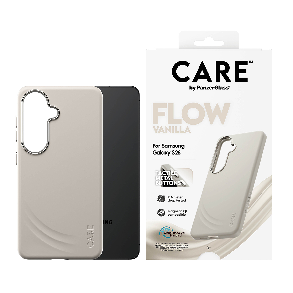 CR77067PanzerGlass CARE™ by ® Flow Case Vanilla w. Qi Samsung Galaxy S26. Type d'étui: Housse, Compatibilité de marque: Samsung, Compatibilité: Samsung - Galaxy S26, Couleur du produit: Beige