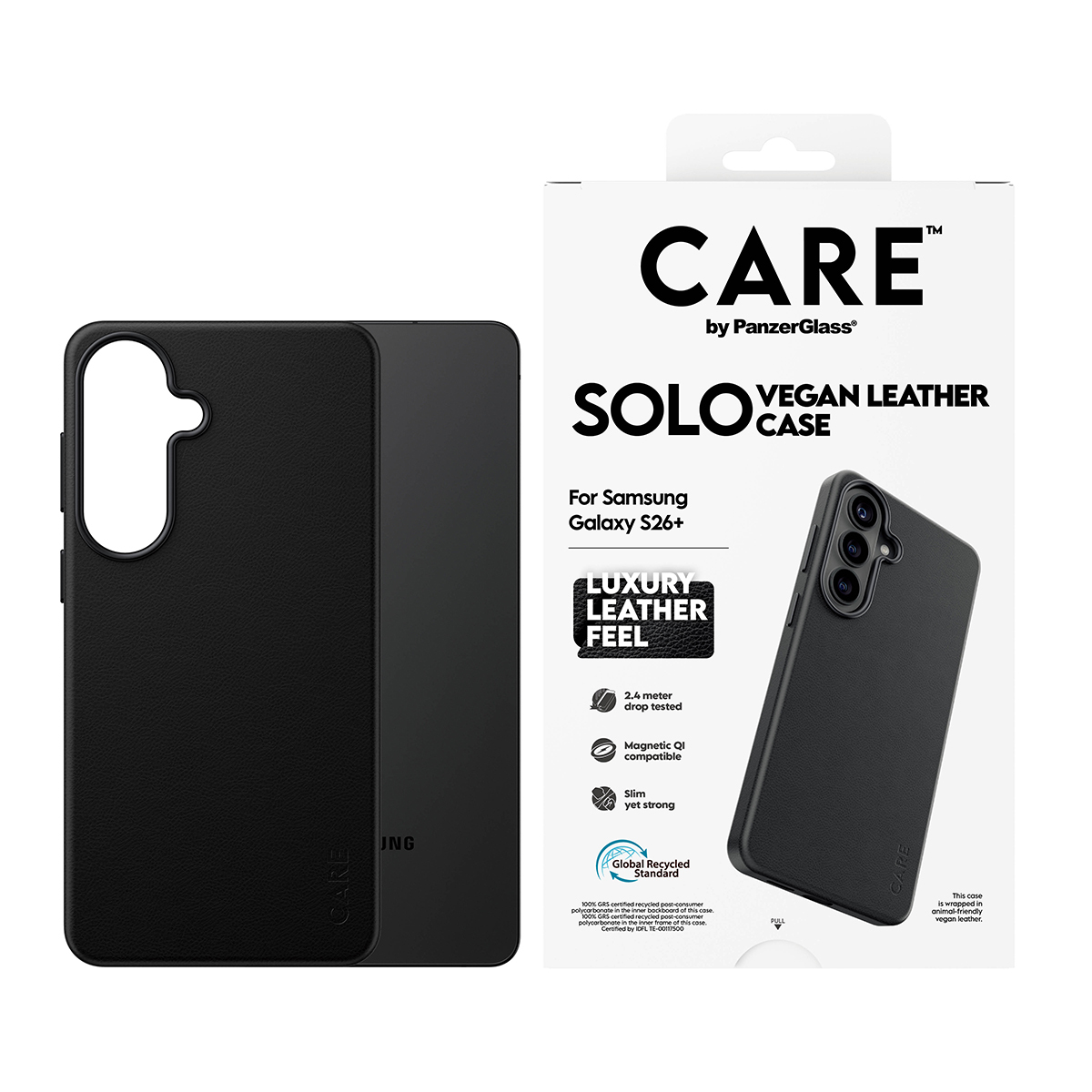 CR79111PanzerGlass CARE™ by ® Solo Case Black w. Qi Samsung Galaxy S26+. Type d'étui: Housse, Compatibilité de marque: Samsung, Compatibilité: Samsung - Galaxy S26+, Couleur du produit: Noir