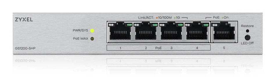 GS1200-5HPV3-EU0101F - Zyxel GS1200-5HPV3 Géré L2 Gigabit Ethernet (10/100/1000) Connexion Ethernet, supportant l'alimentation via ce port (PoE) Bureau Gris