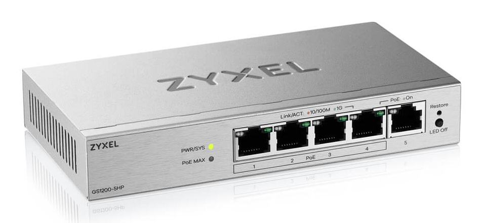 Zyxel GS1200-5HPV3 Géré L2 Gigabit Ethernet (10/100/1000) Connexion Ethernet, supportant l'alimentation via ce port (PoE) Bureau Gris