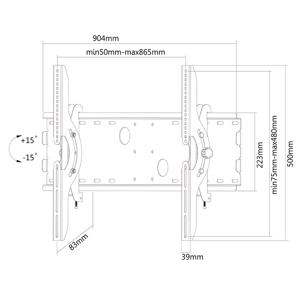 | Compatibilité interface de montage (max) | 865 x 480 mm |