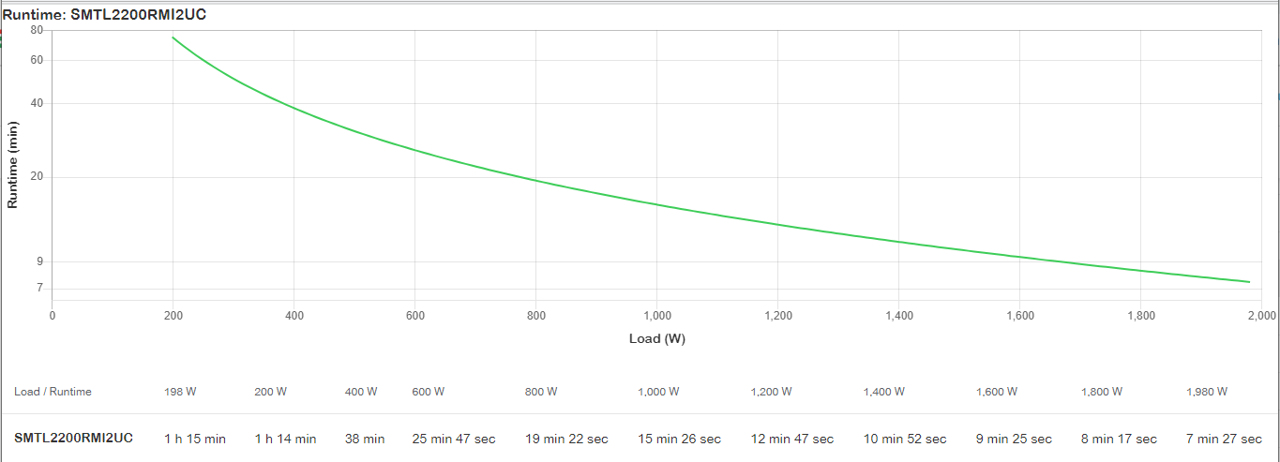 Vous pouvez facilement lire la durée de vie prévue de la batterie dans le graphique d'exécution, que vous pouvez trouver entre les images du produit. Vous pouvez facilement voir combien de temps l'onduleur fournit une alimentation de secours à une certaine charge.