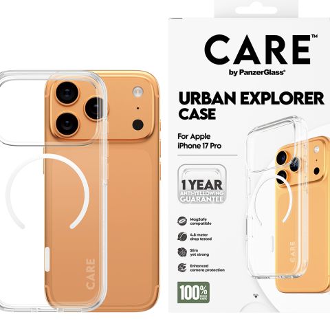 PanzerGlass CARE by ® Flagship Case Transparent Urban Explorer w. White MagSafe iPhone 17 Pro coque de protection pour téléphones portables Housse