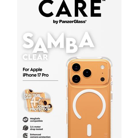 PanzerGlass CARE by ® Fashionable Case Samba Transparent w. White MagSafe iPhone 17 Pro coque de protection pour téléphones portables Housse