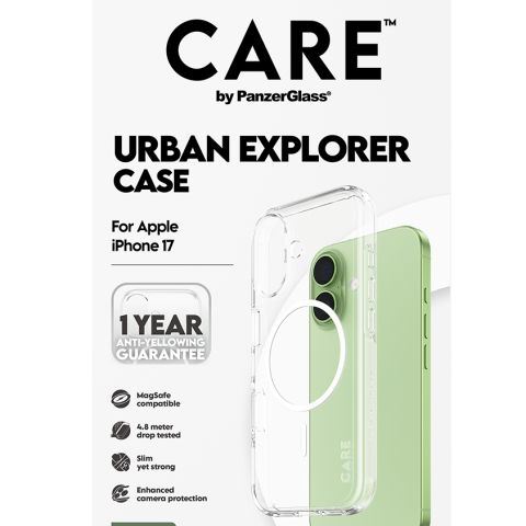 PanzerGlass CARE by ® Flagship Case Transparent Urban Explorer w. White MagSafe iPhone 17 coque de protection pour téléphones portables Housse