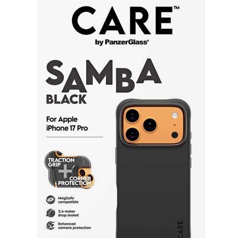 PanzerGlass CARE by ® Fashionable Case Samba Black w. MagSafe iPhone 17 Pro coque de protection pour téléphones portables Housse Noir