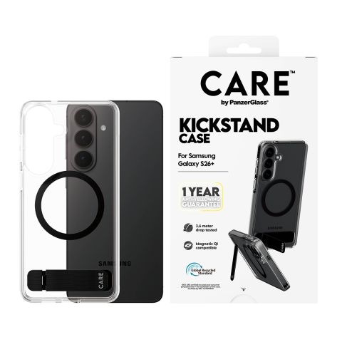 PanzerGlass CARE™ by ® Case Transparent w. Black Kickstand & Qi Samsung Galaxy S26+ coque de protection pour téléphones portables Housse