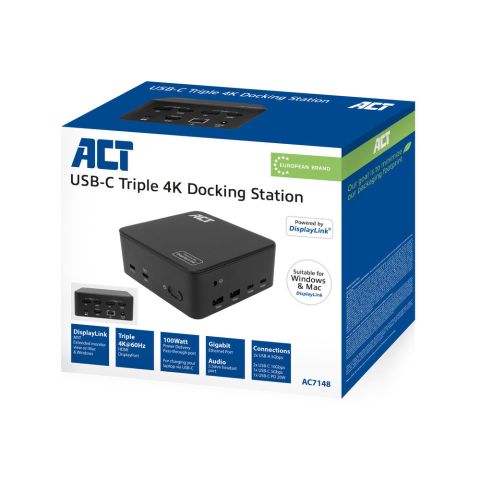 ACT Station d'accueil USB-C universelle 4K, pour 3 moniteurs HDMI/DisplayPort, DisplayLink